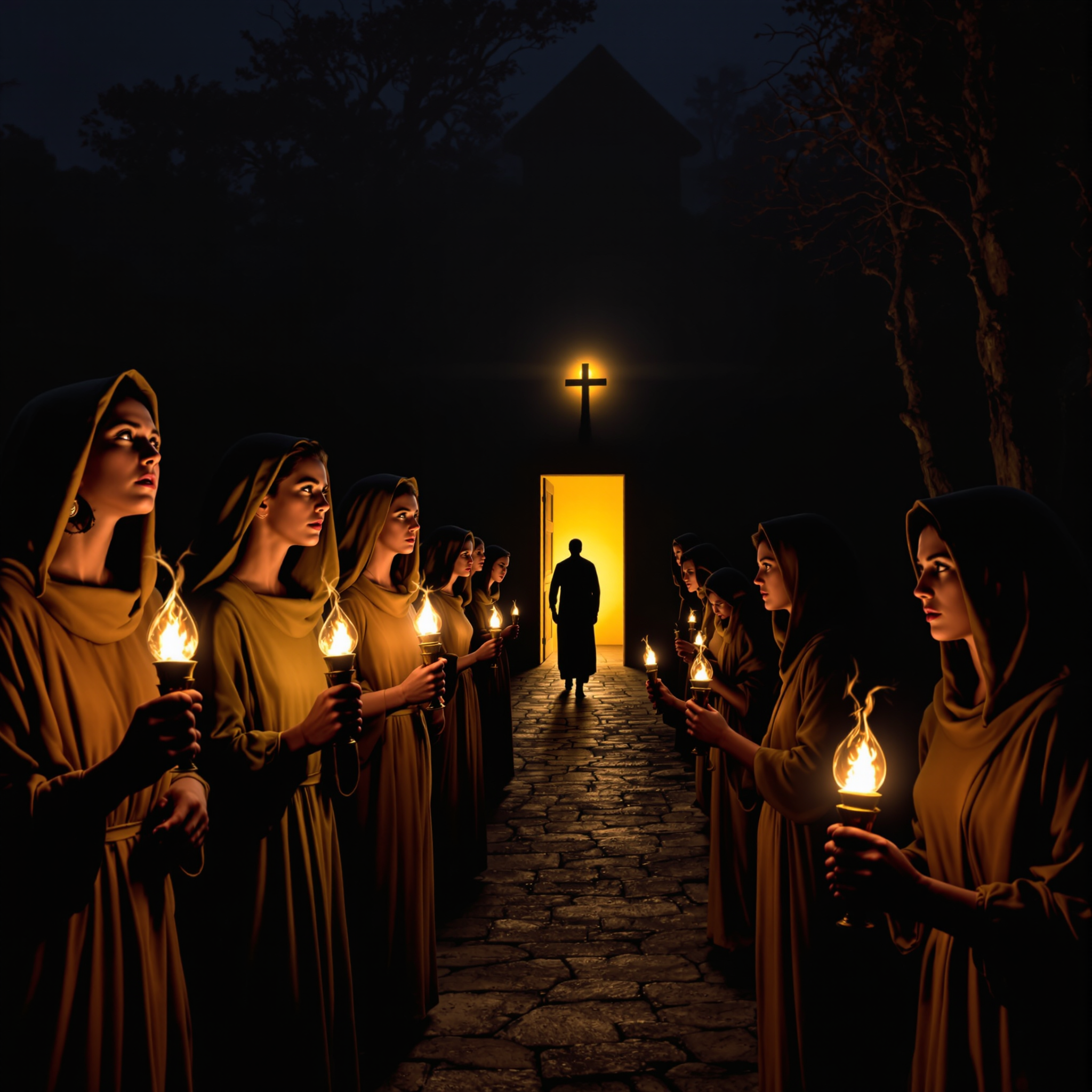“Then the kingdom of heaven shall be likened to ten virgins who took their lamps and went out to meet the bridegroom. 2 Now five of them were wise, and five were foolish. 3 Those who were foolish took their lamps and took no oil with them, 4 but the wise took oil in their vessels with their lamps. 5 But while the bridegroom was delayed, they all slumbered and slept.