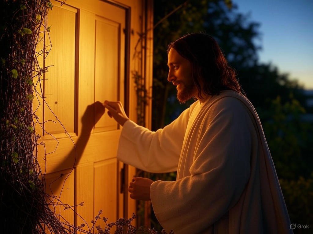 Behold, I stand at the door and knock. If anyone hears My voice and opens the door, I will come in to him and dine with him, and he with Me.